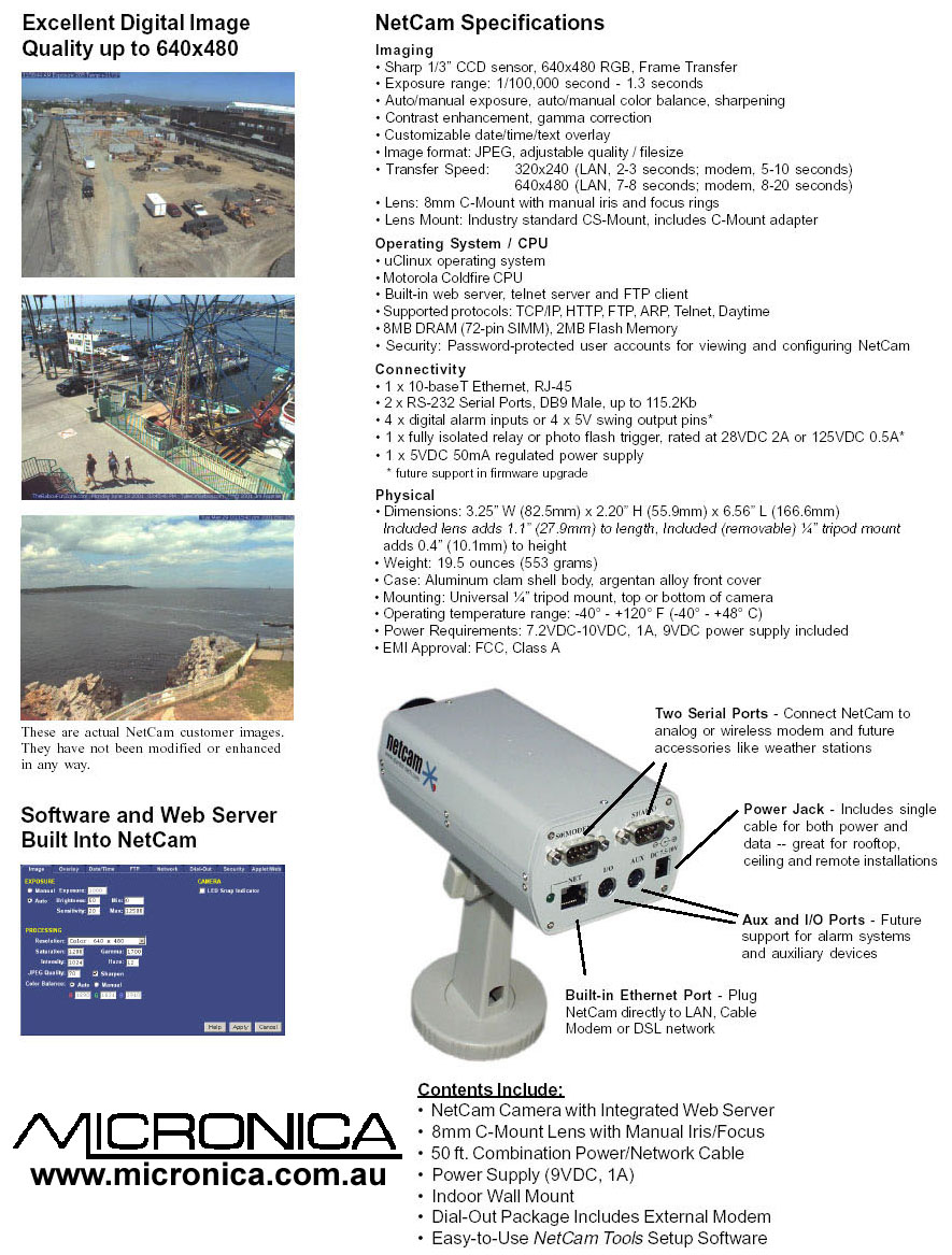 [ NetCam Main Info Page | MICRONICA Main Page | Product Catalog ]