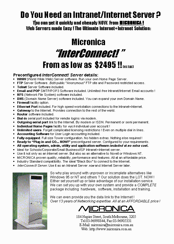 - Your own special Banner Add on our main home page www.micronica.com.au